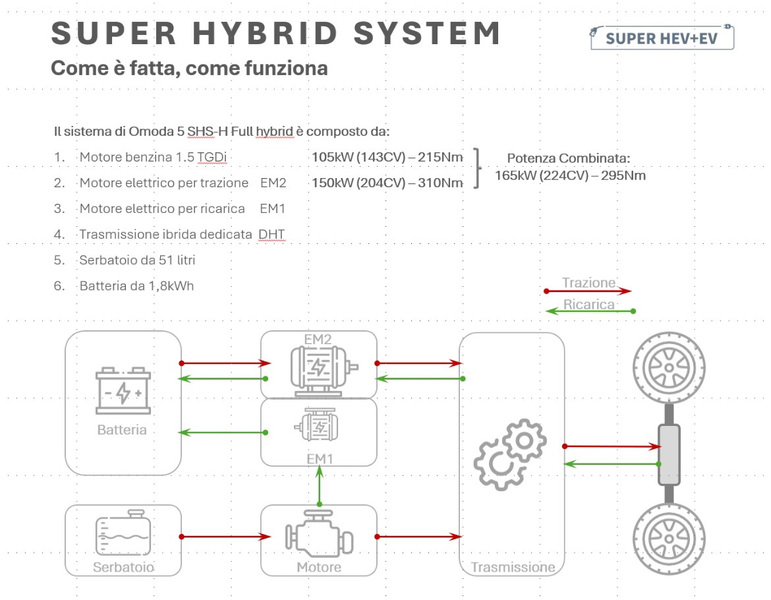 Rispetto allo SHS plug-in montato, per esempio, su Omoda 9, la filosofia resta la stessa: ibrido serie-parallelo con ampia quota di trazione elettrica. Cambiano però batteria e utilizzo: sulla plug-in l’accumulatore è molto più grande, c’è la ricarica esterna e si possono percorrere decine di chilometri a zero emissioni se si collega l’auto alla presa ogni giorno. SHS-H, invece, punta sulla praticità assoluta: nessun cavo, gestione automatica dell’energia, stessa logica di controllo ma orientata a chi vuole un’ibrida “tradizionale” con un livello di efficienza che, dati alla mano, sarà interessante verificare su strada nel prossimo test completo.
