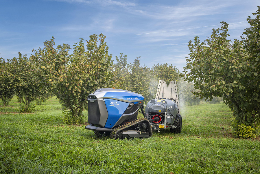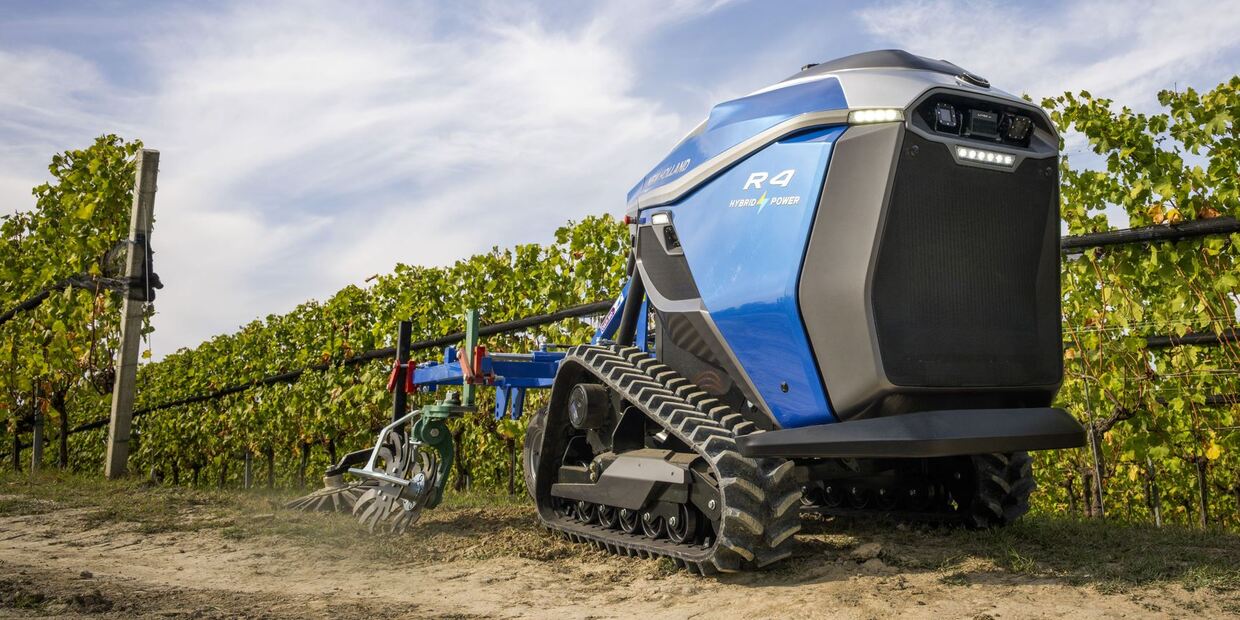 Quando si parla però di colture permanenti, come i frutteti e i vigneti, a colpire è soprattutto R4, il piccolo robot compatto presentato da New Holland, ancora in fase di test ma pronto per il debutto su larga scala dal prossimo anno. Non si tratta di un trattore in miniatura, ma di una piattaforma autonoma pensata per i lavori ripetitivi che nessuno vuole più fare: sfalcio tra i filari, lavorazioni leggere ed irrorazione. Esiste in versione completamente elettrica, per i vigneti più stretti, e in versione ibrida per filari più ampi e carichi di lavoro più intensi.